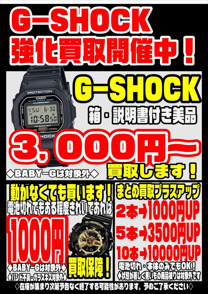 G-SHOCK買取キャンペーン中! G-SHOCKを高く売るポイント! ① 未使用品・美品は査定額アップ 箱・説明書など付属品が全て揃っている物は高評価です。 ② 限定品・コラ… -