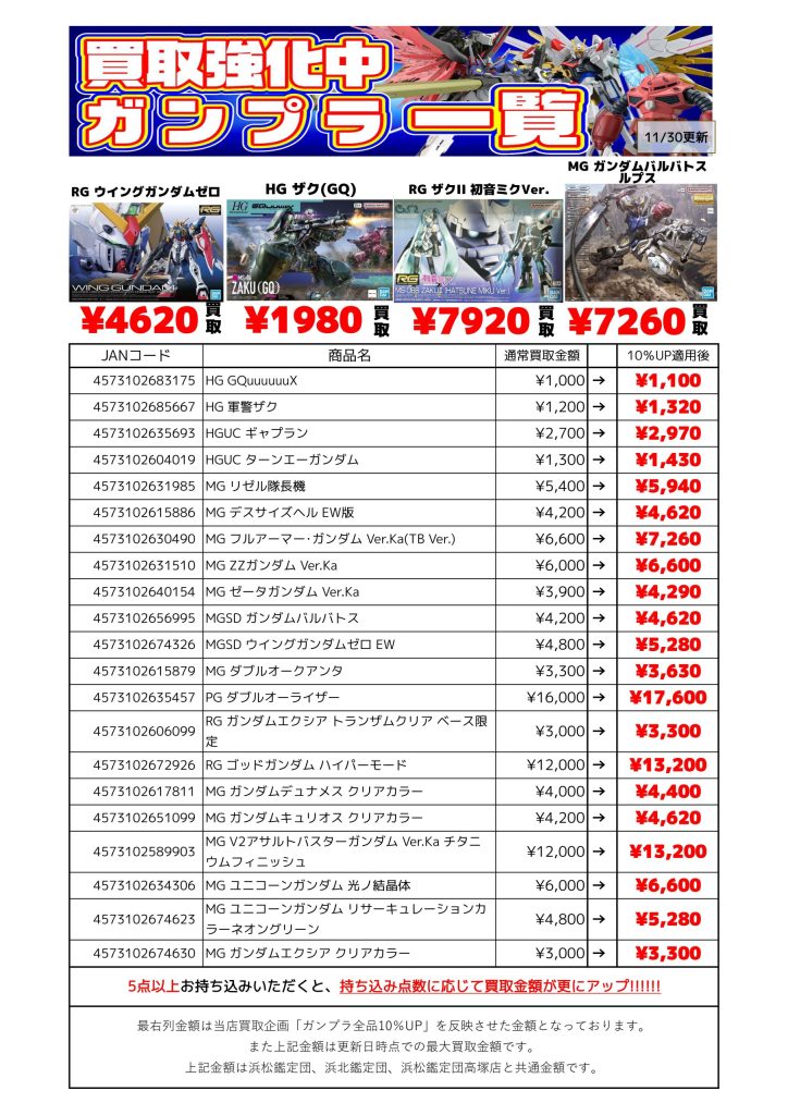 【11/16更新】ガンプラ全品10%UP買取キャンペーン実施中!最新高価買取リストを公開(浜北鑑定団)