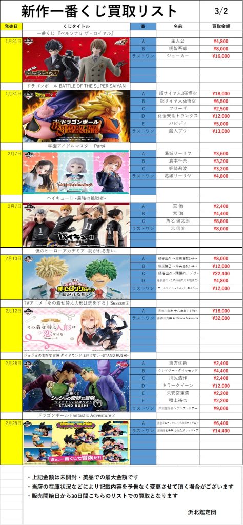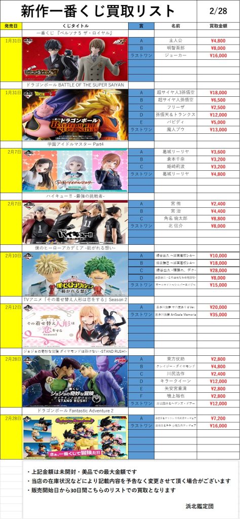 新作一番くじ買取リスト更新しました!2/28