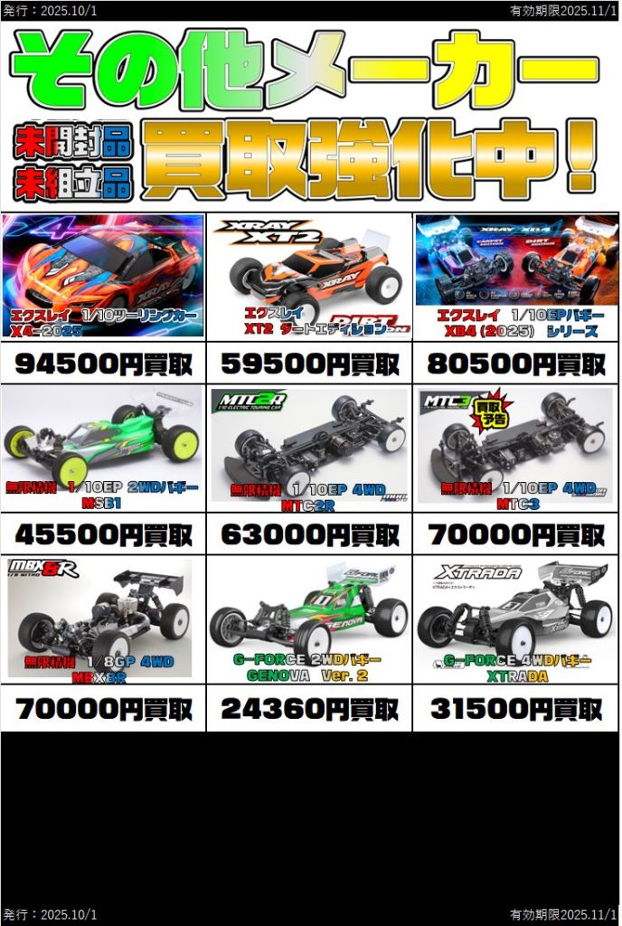 北鑑ラジコン倶楽部 ホビーラジコン買取表