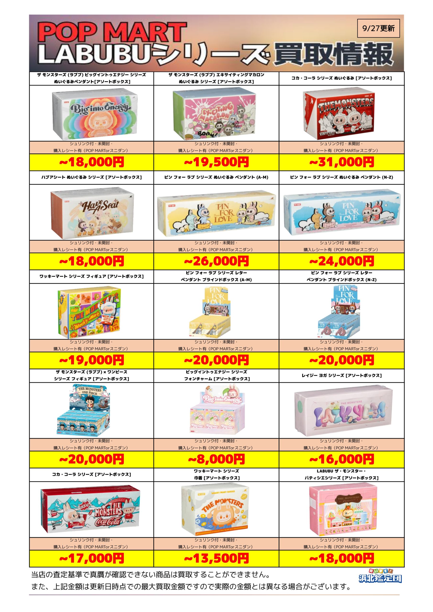 こんにちは!浜北鑑定団もってきーなです!本日もってきーな入荷カレンダー更新しました!ほしかったあのフィギュアをこの機会にぜひゲットしてみてください💪 皆様のご来店心よりお待ちしております😂 新着情報 アミューズ フィギュア もってきーな 入荷 よかったらシェアしてね! URLをコピーしました! 【宅配買取実績】人気ガンプラ多数!RG・HG・ENTRY GRADEなど一挙買取! ガンプラ買取情報更新しました! 関連記事 新作一番くじ買取リスト更新しました!9/30 【9/27更新】POP MART LABUBUシリーズ 最新高価買取情報(浜北鑑定団) 【9/27更新】ガンプラ買取強化リスト公開!高価買取は浜北鑑定団へ 朗報!POP MART LABUBUシリーズ高価買取中! 【9/21更新】ガンプラ買取強化中!最新リスト公開【浜北鑑定団】 【9/15更新】POP MART LABUBUシリーズ 最新高価買取情報(浜北鑑定団) 【9/14更新】ガンプラ買取強化中!最新リスト公開【浜北鑑定団】 【9/11更新】POP MART LABUBUシリーズ 最新高価買取情報(浜北鑑定団)