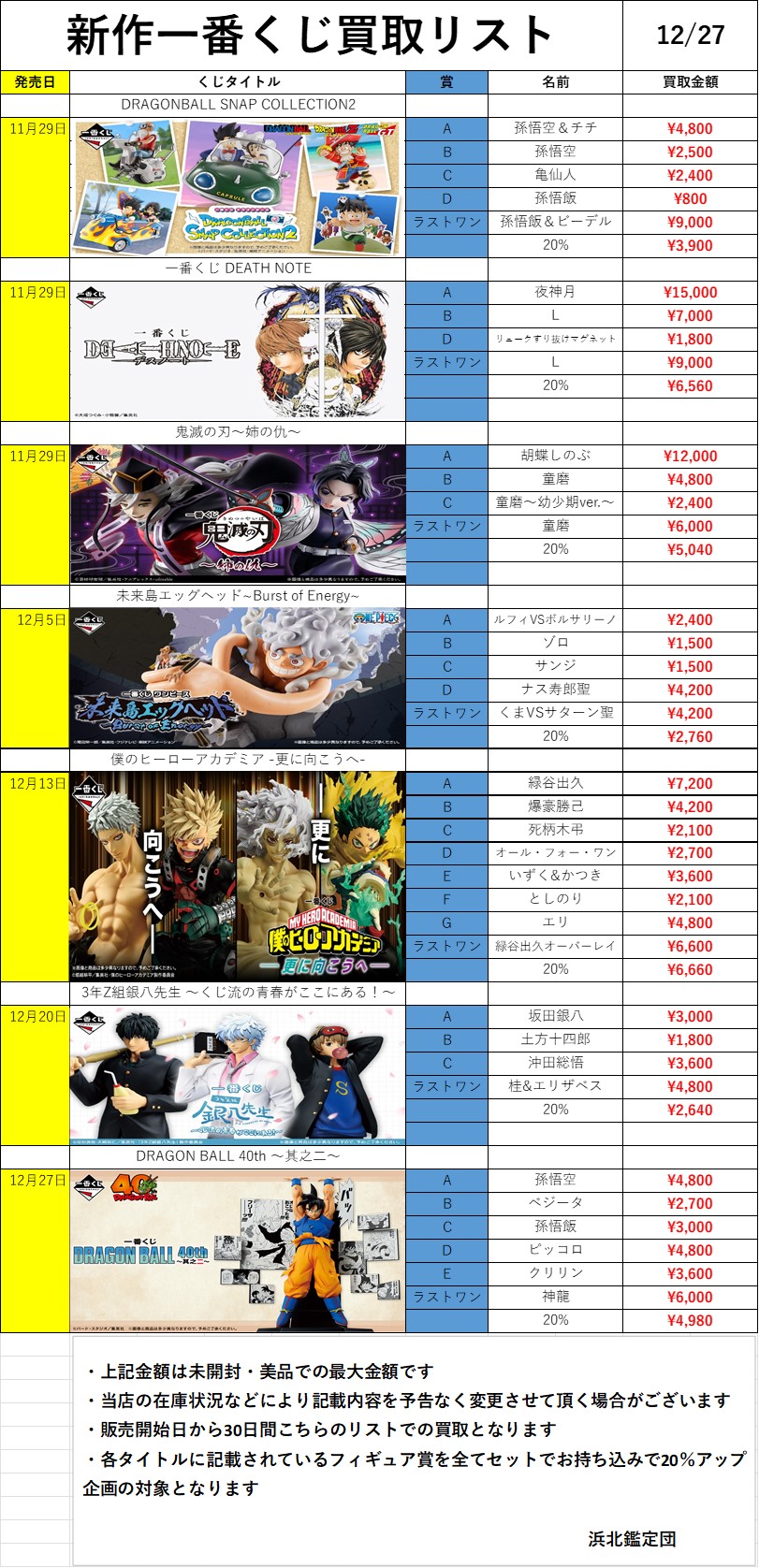 ※買取金額は予告なく変更となる場合がございます。