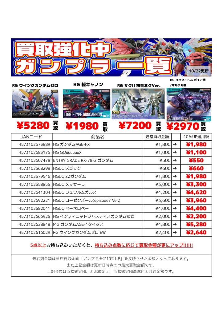 ガンプラ 最新高価買取リスト(10%UP適用後)