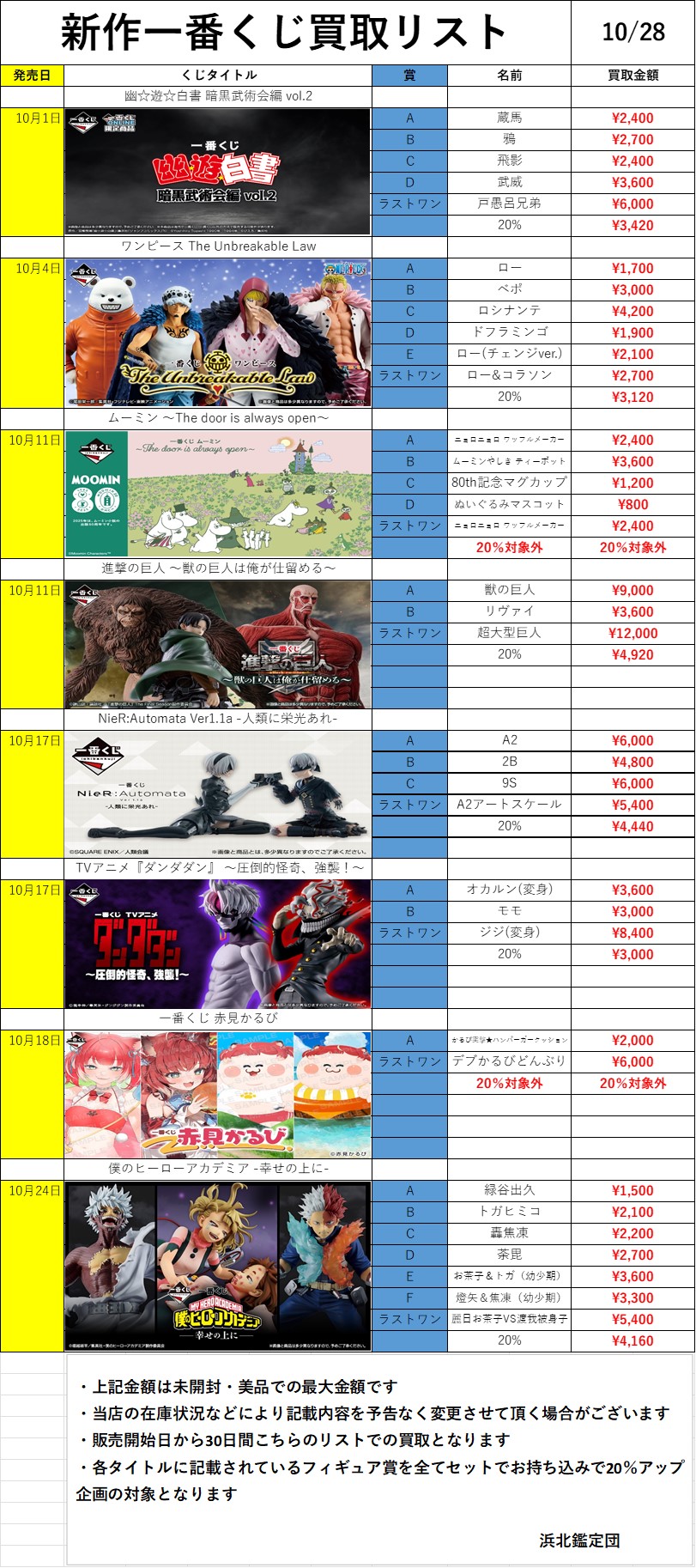 • 「新作一番くじ買取リスト」に載っているもののみ+20%UP企画の対象です