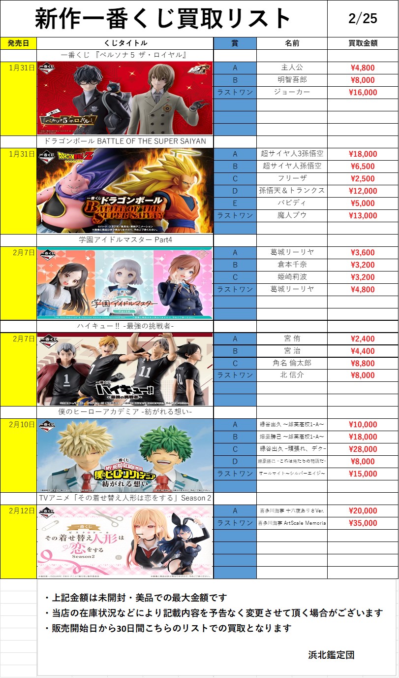 新作一番くじ買取リスト更新しました!