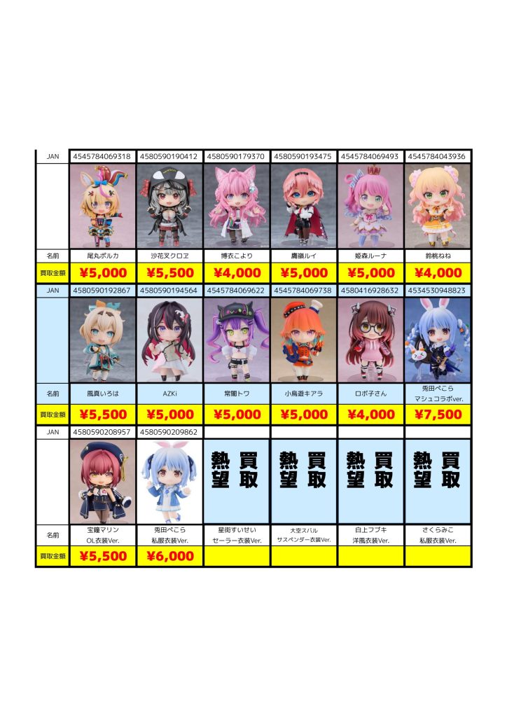 ■ ホロライブ ねんどろいど買取価格(12/7更新)