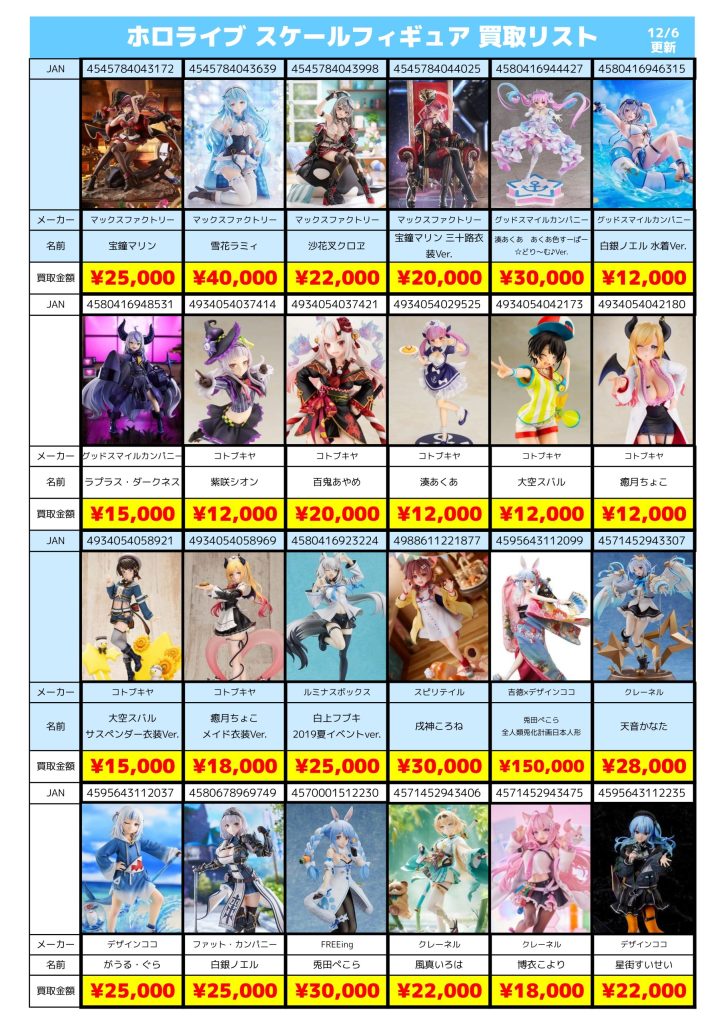 ■ ホロライブ スケールフィギュア買取価格(12/7更新)