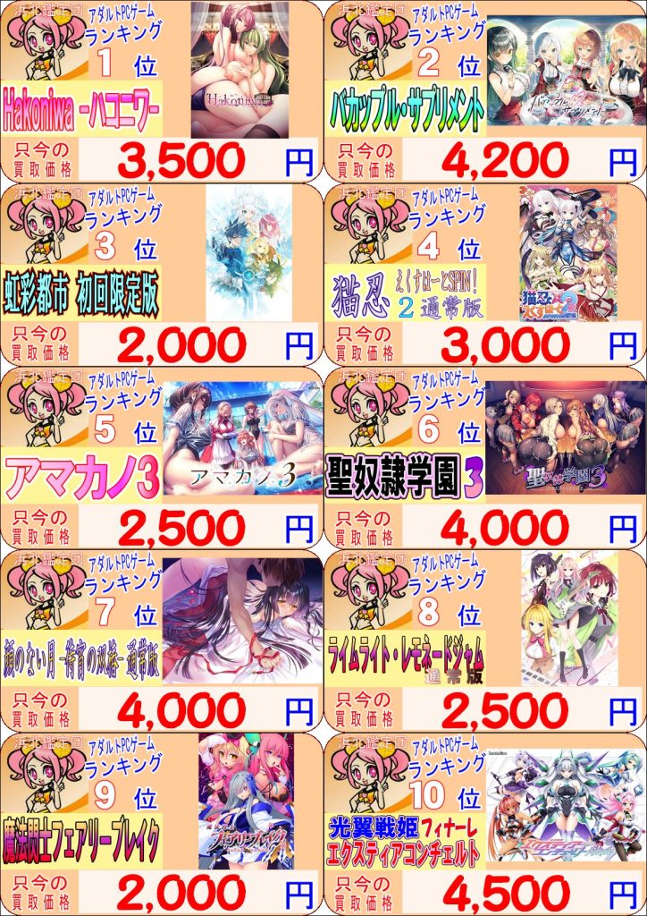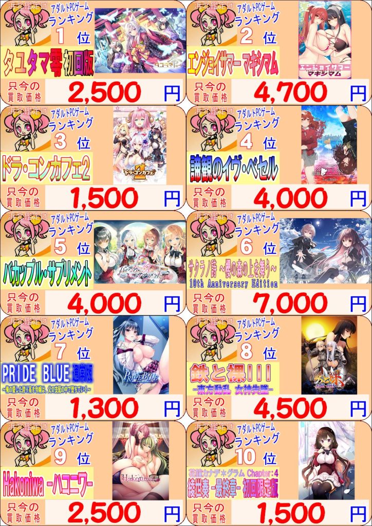 ※浜北鑑定団アダルトPCゲーム部門:2024年 10月01日 ~ 2025年 9月30日の期間中の販売個数上位50位