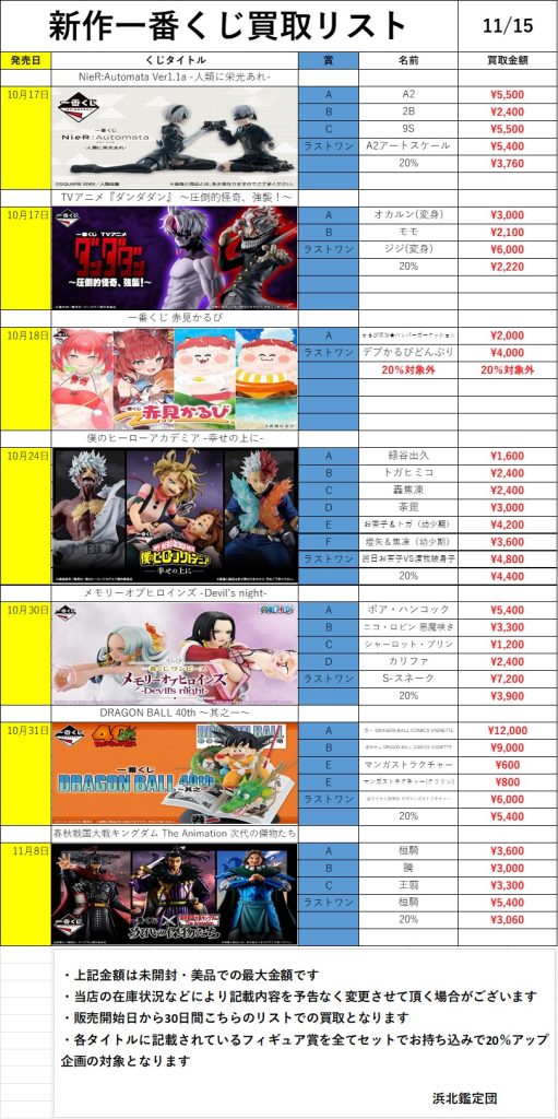 新作一番くじ買取リスト更新しました!11/15